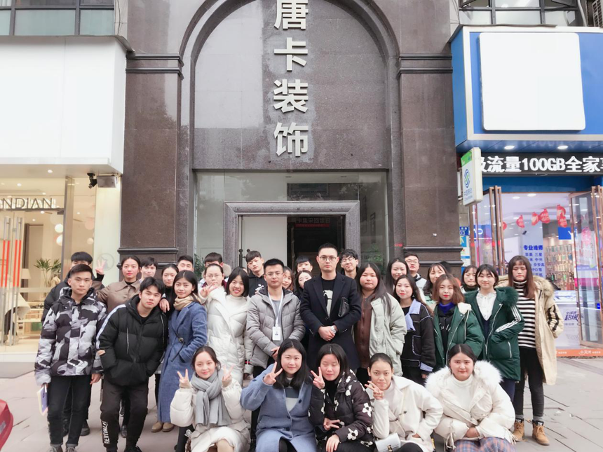 为深化产教融合、校企合作,全面提高员工实践能力,激发学习热情,2018年12月19日,在建筑工程系海天班两位老师的带领下,17装饰1033班来到海天校外实训基地-唐卡装饰永川分公司参观学习。