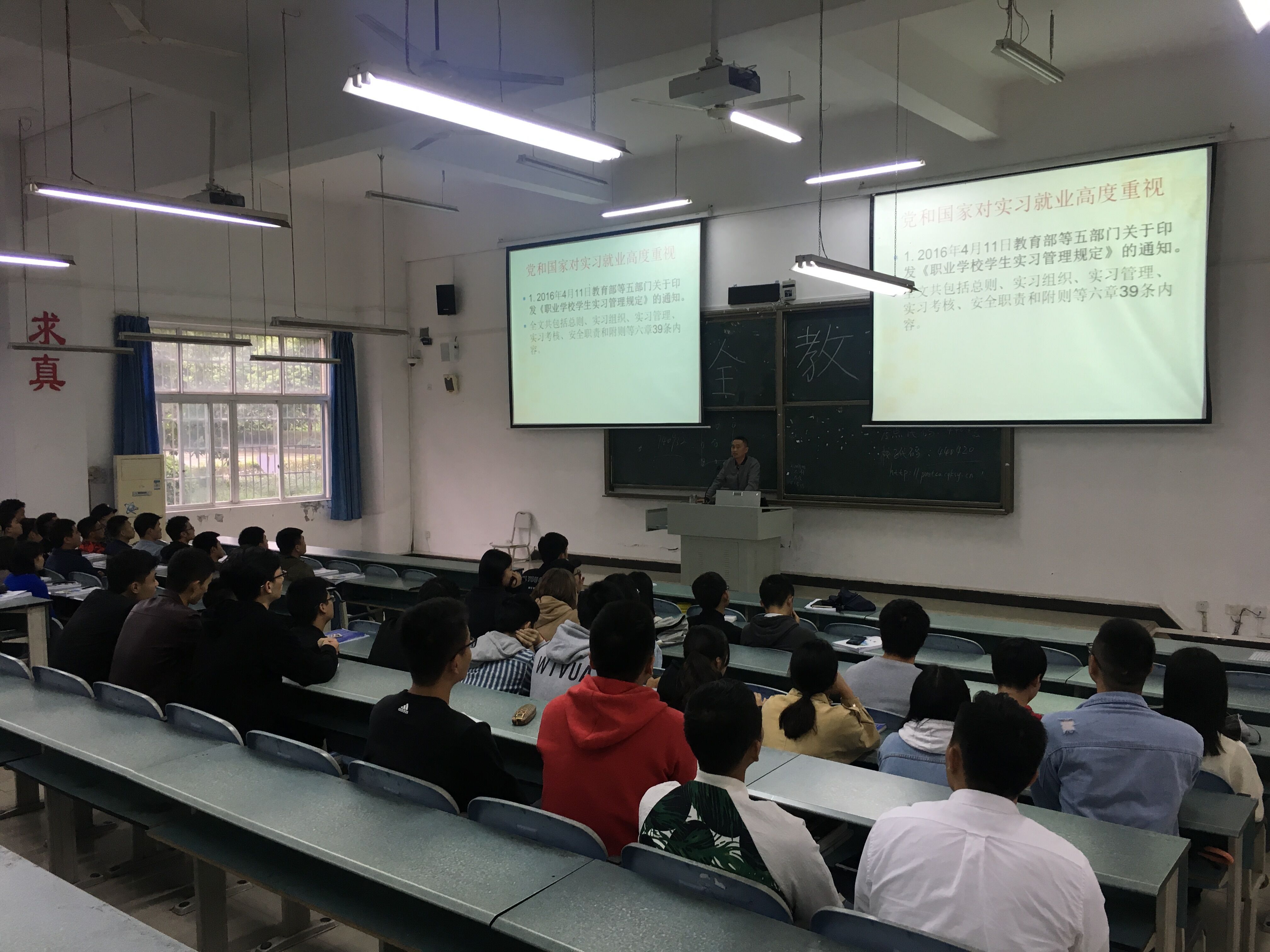 为做好2016级员工顶岗实习的准备工作,让员工明确实习的目的、意义,引导员工做好实习工作,10月8日下午16:00,我系在文华楼128室召开了2016级实习动员大会,系党总支书记何春华、系主任韩永光、专职组织员、辅导员及2016级建设工程管理、市政工程技术全体同学参加此次会议。