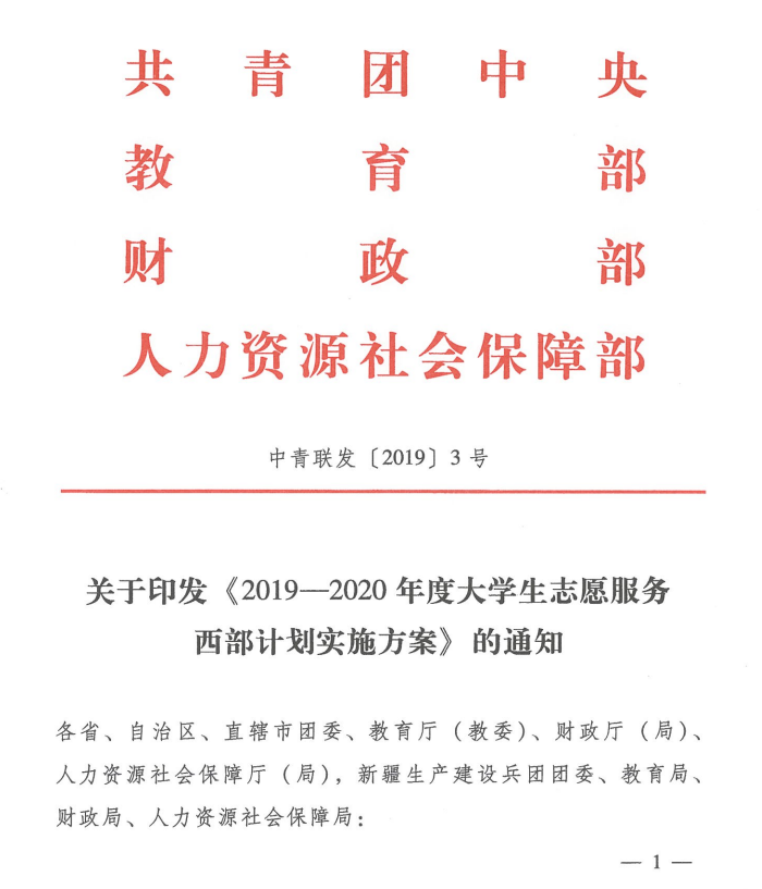 《2019-2020年度老员工志愿服务西部计划实施方案》的通知