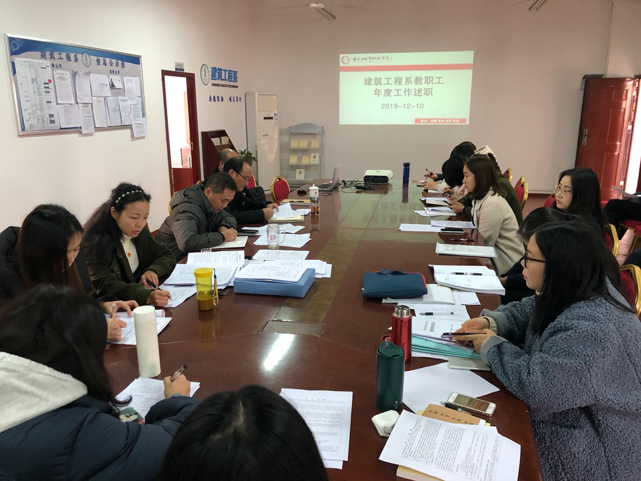 12月10日下午2:30,建筑工程系在光华楼406会议室举行2019年年度工作总结会议。会议由系主任韩永光同志主持,建筑工程系全体教职工参加了本次总结工作会议。