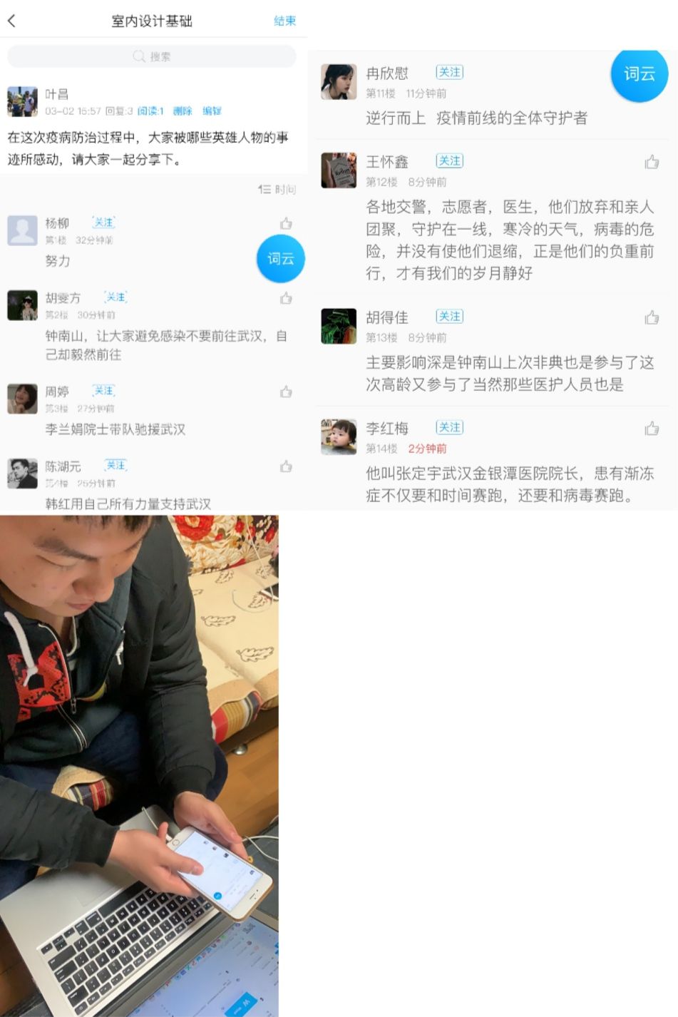 建筑工程系艺术教研室于3月2日正式启动《室内设计基础》《商业空间设计》《建筑AutoCAD制图》等5门课程线上教学,所有线上课程均坚持以学科德育为理念,灵活使用网络资源,注重员工人格魅力的培养与思想引领。在各个课程中教师提前收集在疫情防控过程中涌现出的先进典型、英雄人物和感人事迹等相关素材,并结合课程特点和员工实际,精心组织教学活动,备好教案教程。例如在《室内设计基础》课程中,例举了此次疫情中建筑设计应用典型案例——“火神山”医院建设,让员工亲身体会建筑设计行业的重要性,而一个设计团队是如何高效地完成国家布置的任务,从而树立对专业的自信心和报效祖国的热切之心。
