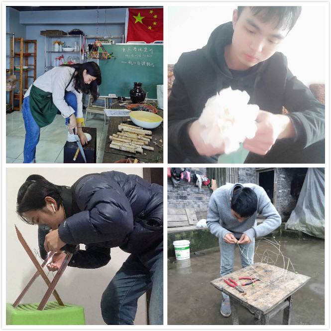 艺术插花赛项:重庆队选手文成红为5月的比赛积极备战,其余选手进行花束的螺旋形式和架构的创意设计训练。