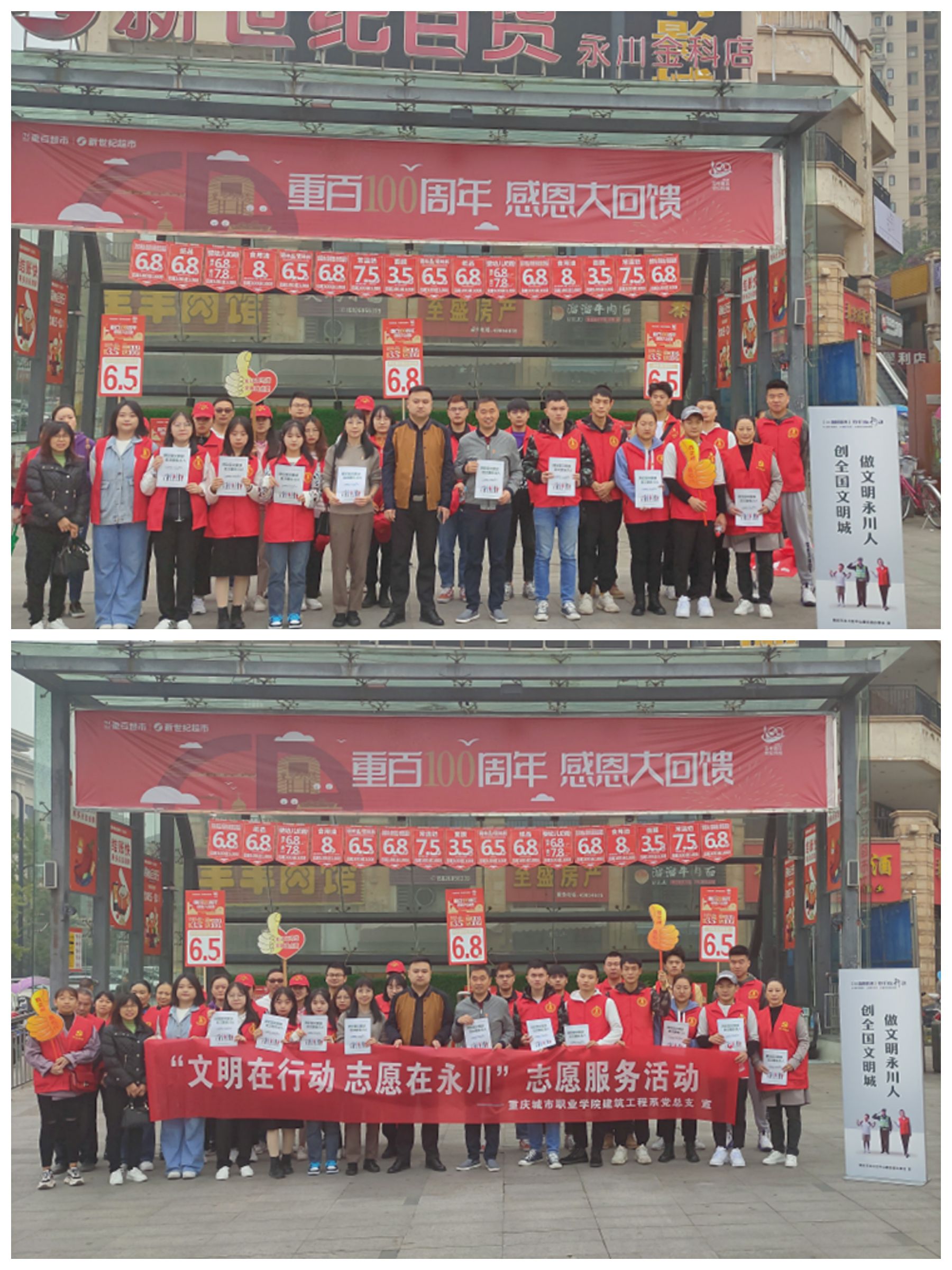 10月24日,建筑工程系党总支联合兴龙湖社区在金科商街开展“文明在行动,志愿在永川”社会服务活动,建筑工程系党总支书记韩永光、员工党支部书记何宜及党员代表、入党积极分子代表参与此次活动。